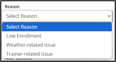 Select a Reason for canceling.