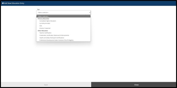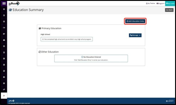 Select the Education Entry type and follow the instructions on the individual page to enter the required information.