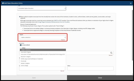 Click “Degree” and select the degree/education type.