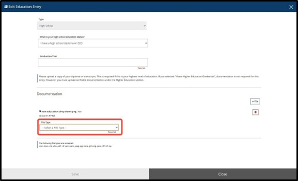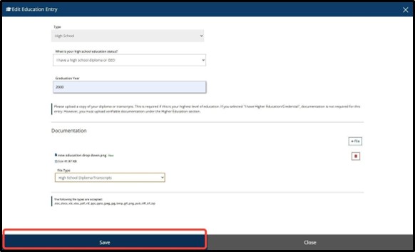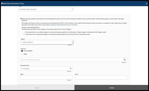 Repeat How to Upload Documentation to add additional/other Education.