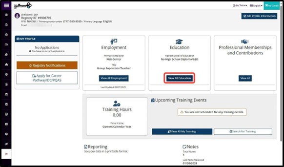 Click View All Education.