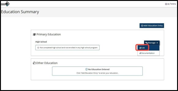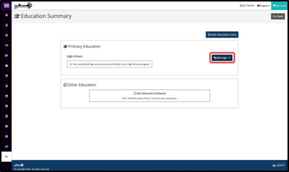 To add high school, click Manage under the High School section.