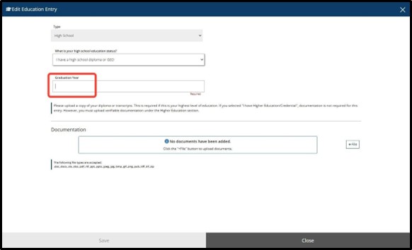 If you select, I have a high school diploma or GED enter the Graduation Year